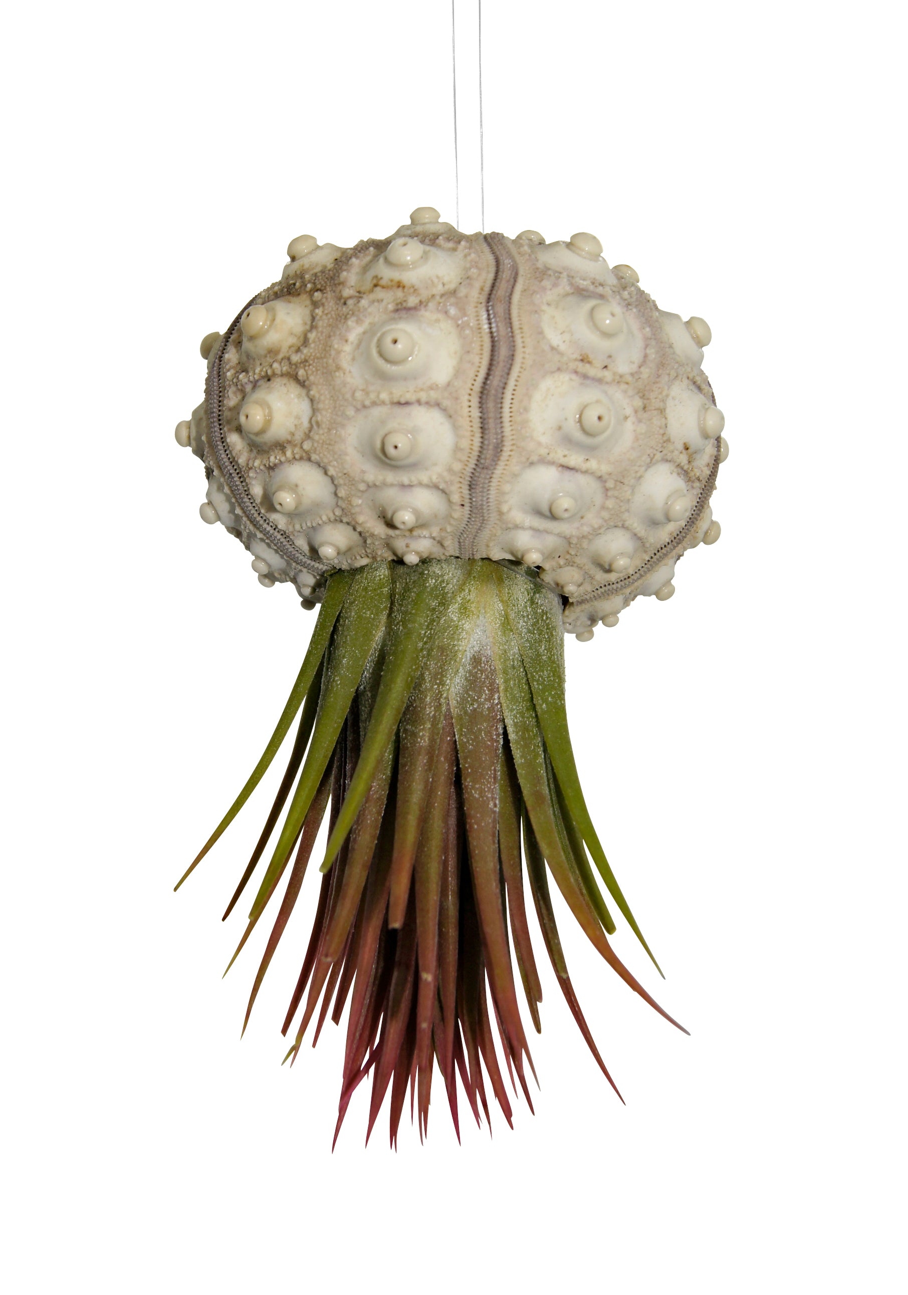 Seeigelgehäuse mit einer echten lebenden Tillandsie ( keine Kunstpflanze ) mit Aufhängung