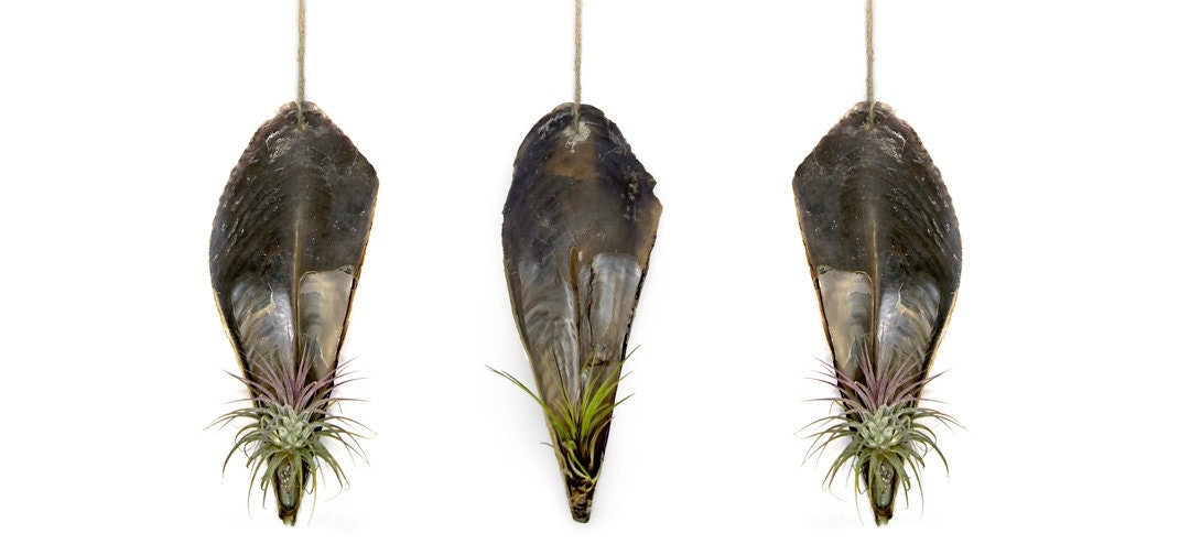 Muscheln mit je einer echten lebenden Tillandsie 3er Set