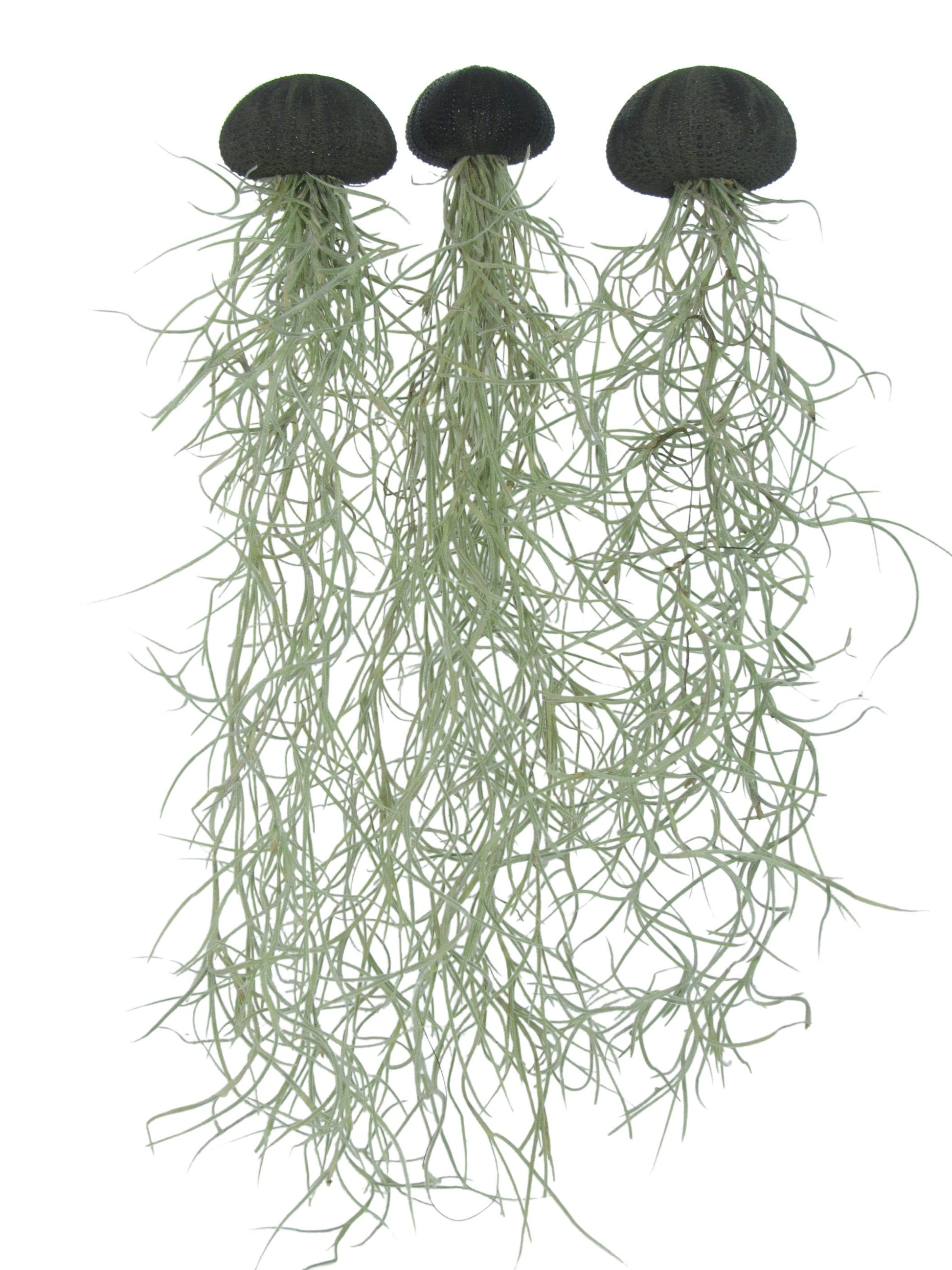 Seeigel schwarz mit spanischem Moos Tillandsie 3er Set