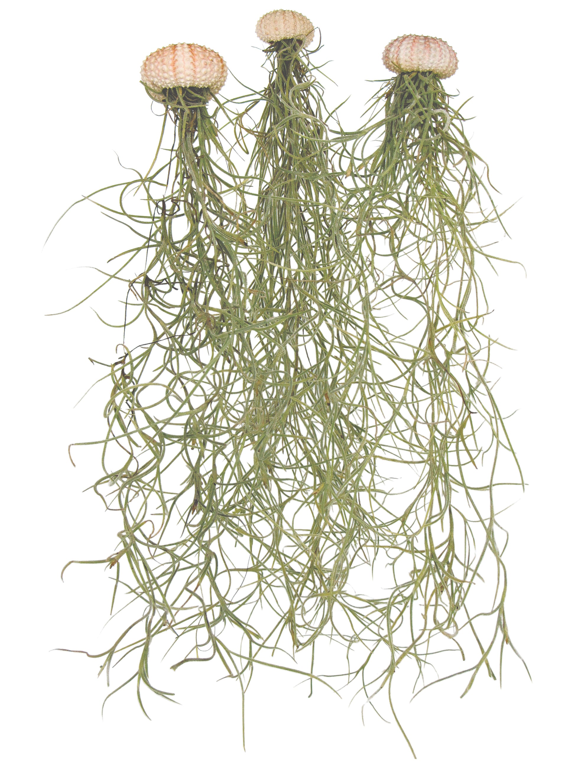 Lieferumfang: 3x Seeigelgehäuse rosa ca. 4 cm Ø & jeweils eine echte lebende Tillandsie - Spanisches Moos ( keine Kunstpflanze )