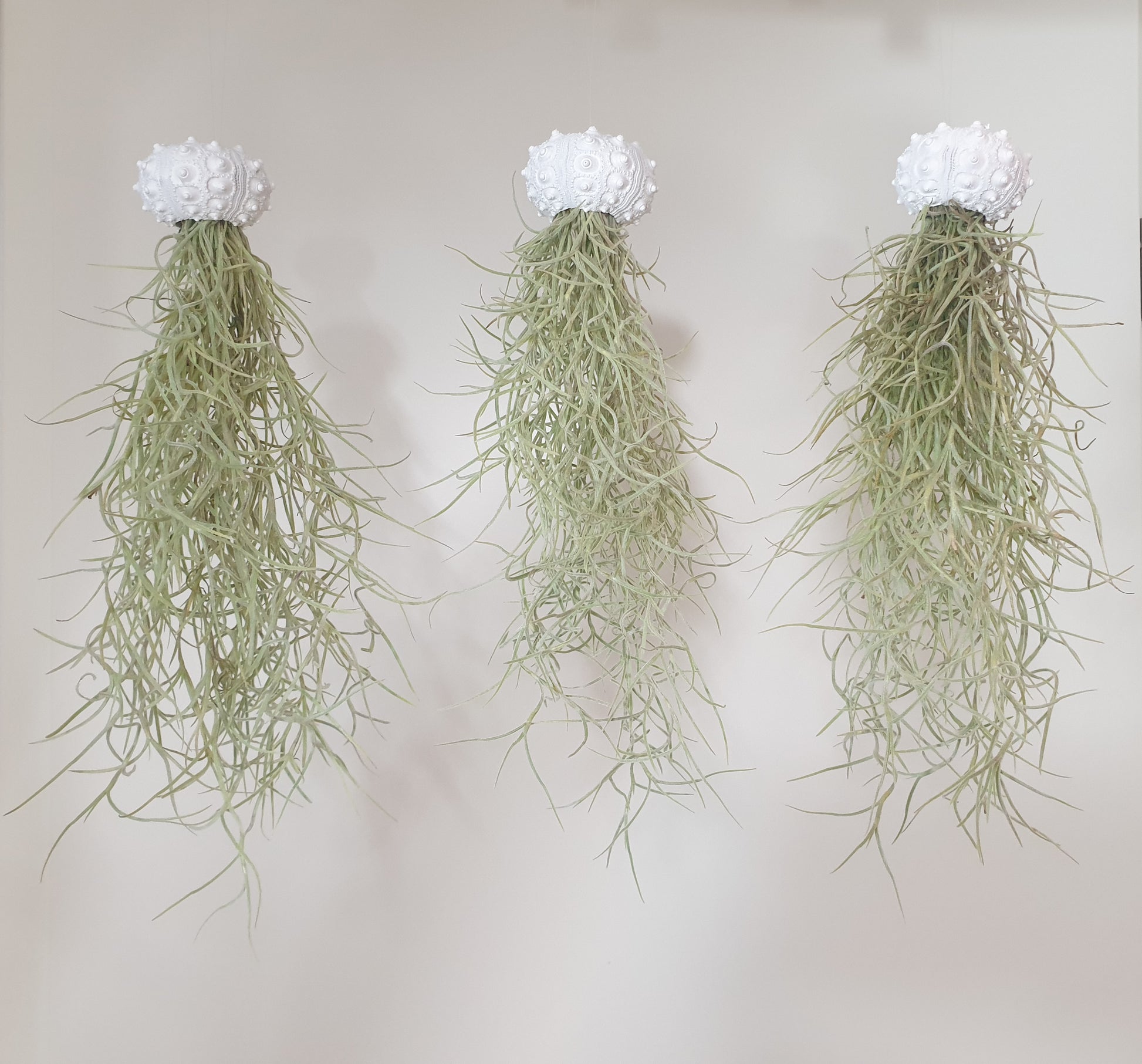 3er Set bezaubernde Kombination aus Seeigelgehäuse und Tillandsie mit Aufhängung