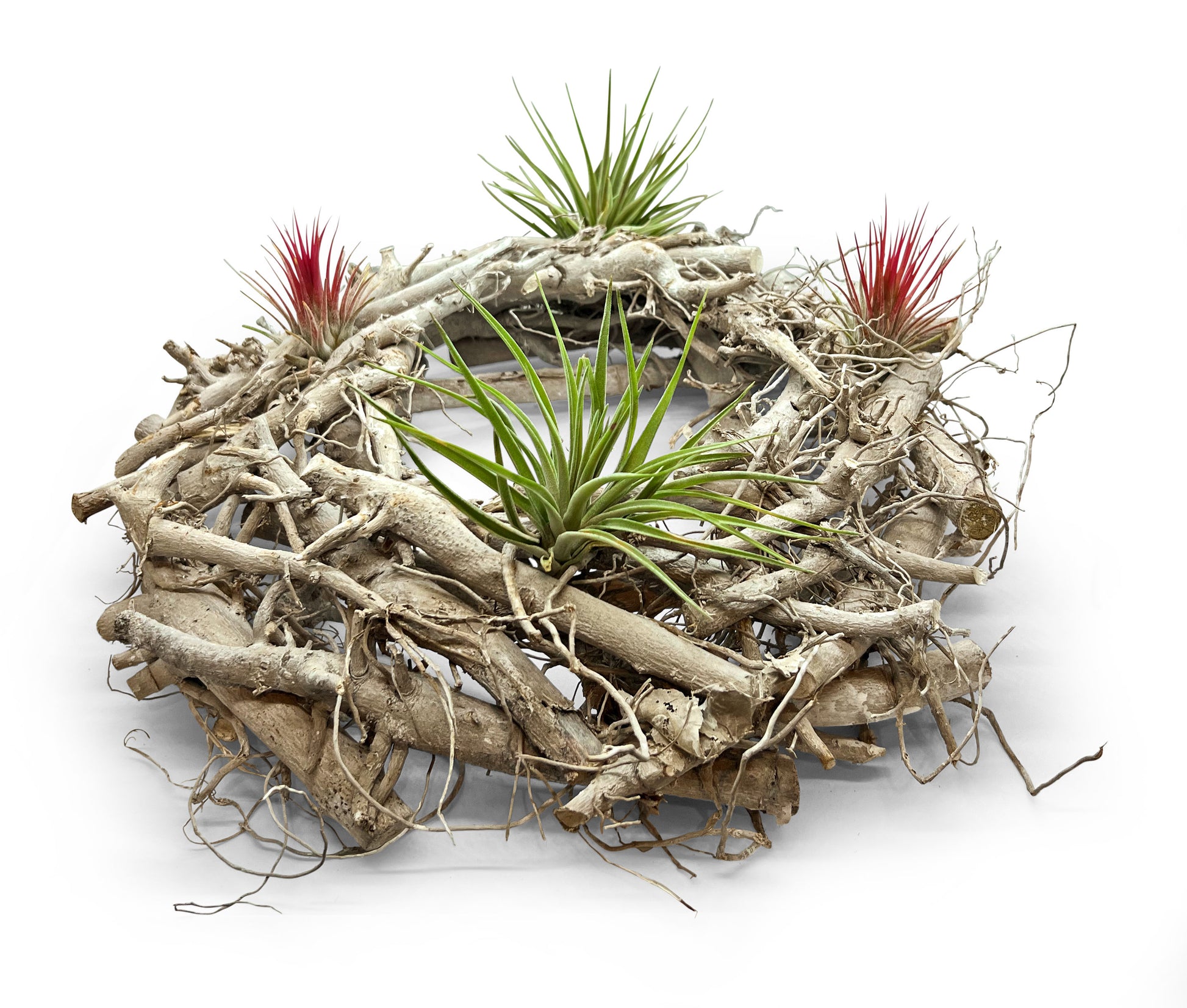 Lieferumfang: Dekokranz kombiniert mit vier echten, lebenden Tillandsien ( keine Kunstpflanze )