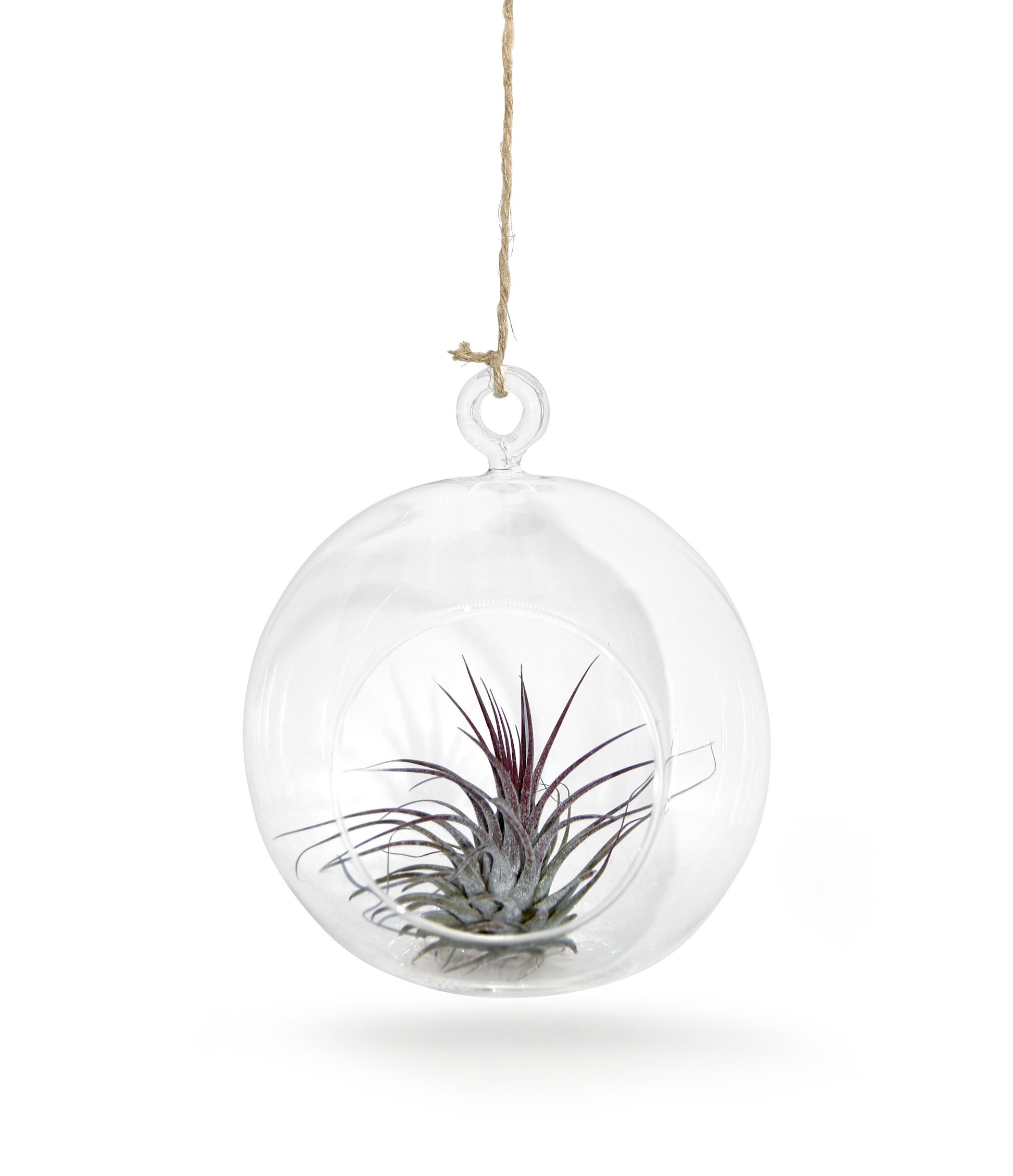 Mundgeblasene Glaskugel 12cm Ø mit Aufhängung und einer echten, lebenden Tillandsie