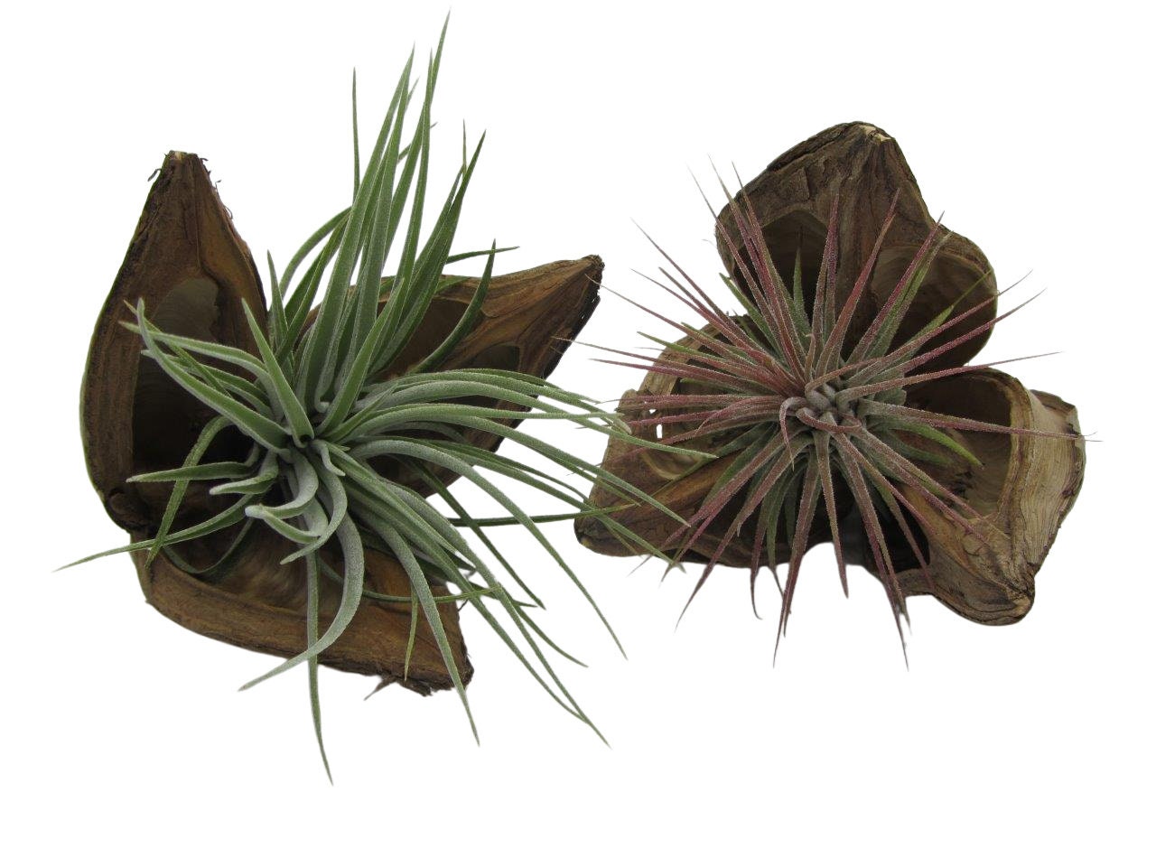 Palmenfrucht mit lebender Tillandsie im 2er Set