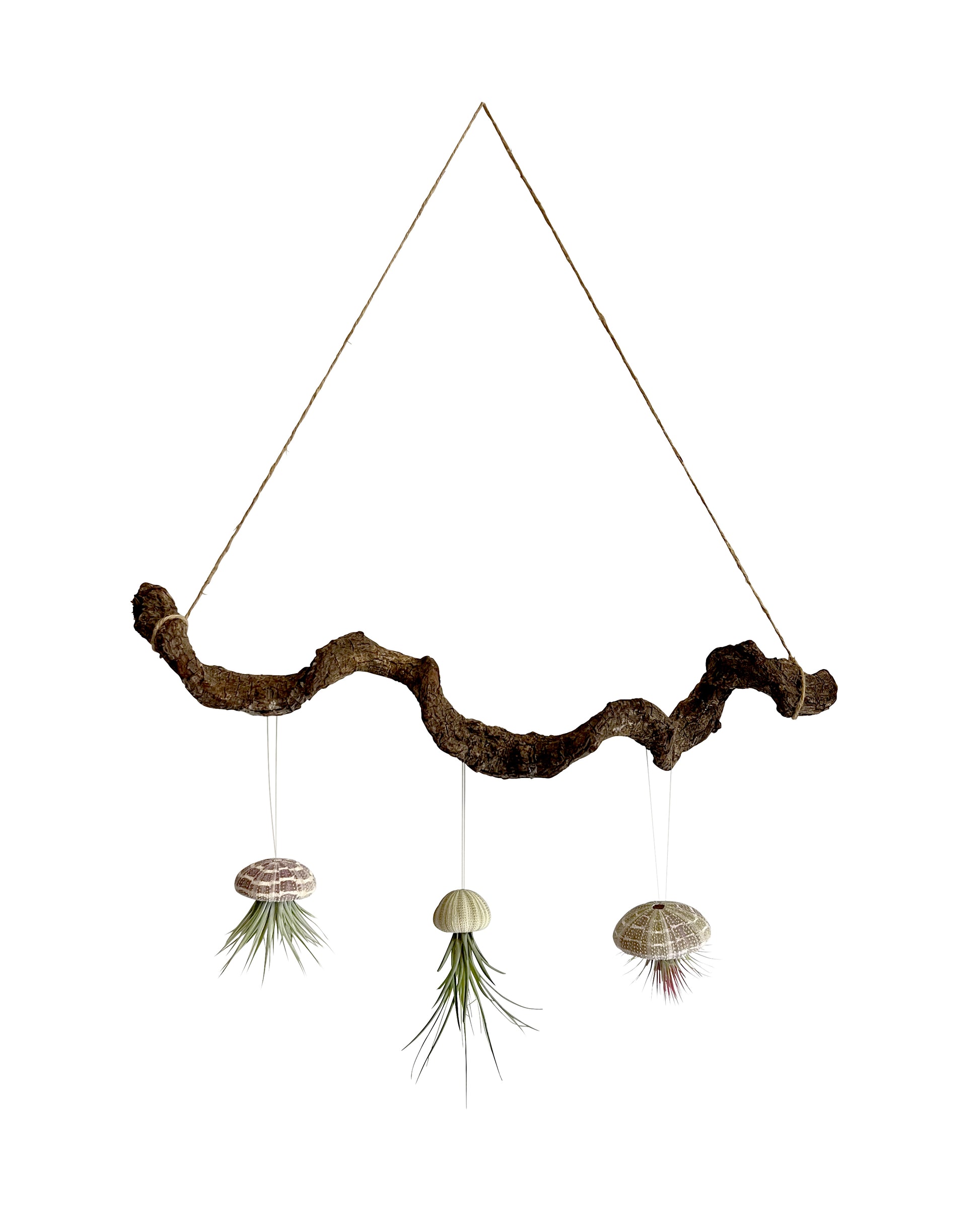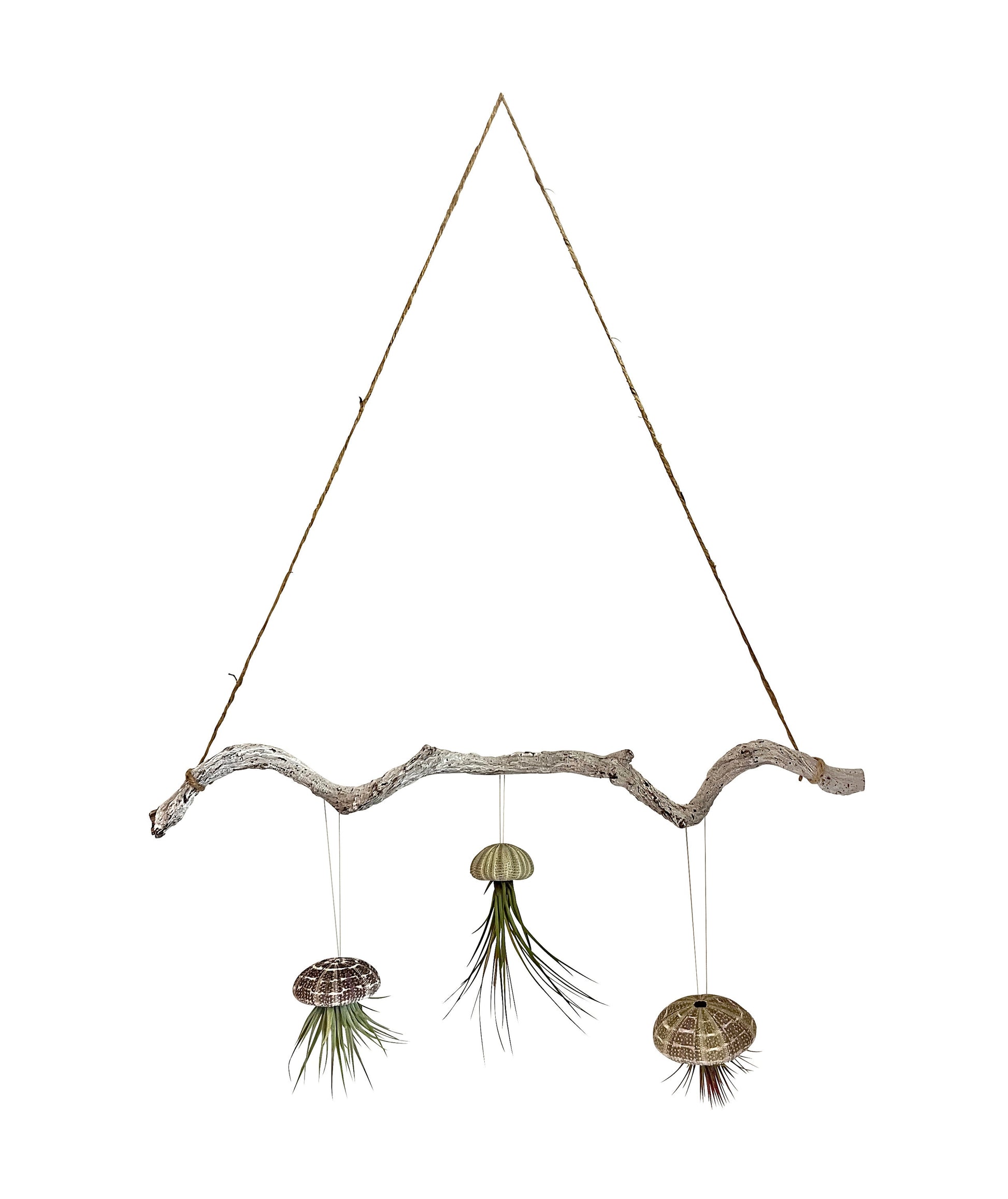 Tolles Set aus drei Seeigel mit drei Tillandsien auf einem Ast angebracht